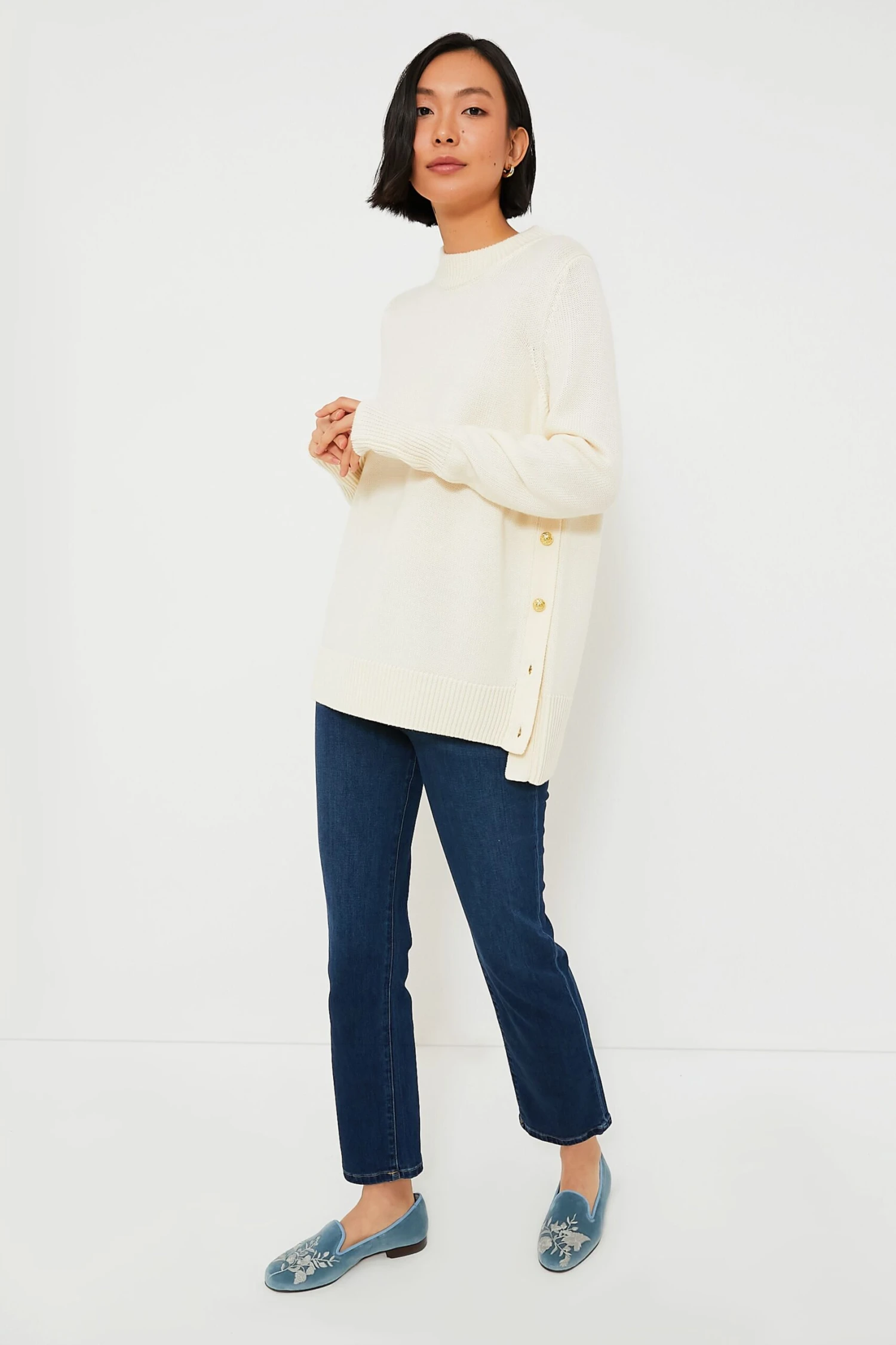 Hand-crafted in Spain from a luxe velvet fabric and adorned with breathtaking embroidery, the Wedgewood Blue Velvet Chinapaper Slippers ensure superior quality forever. We love the grosgrain trim and leather lining on these classic loafers, making them feel ultra-special. Style with denim and a crisp blouse, a sweater dress, and everything in between.