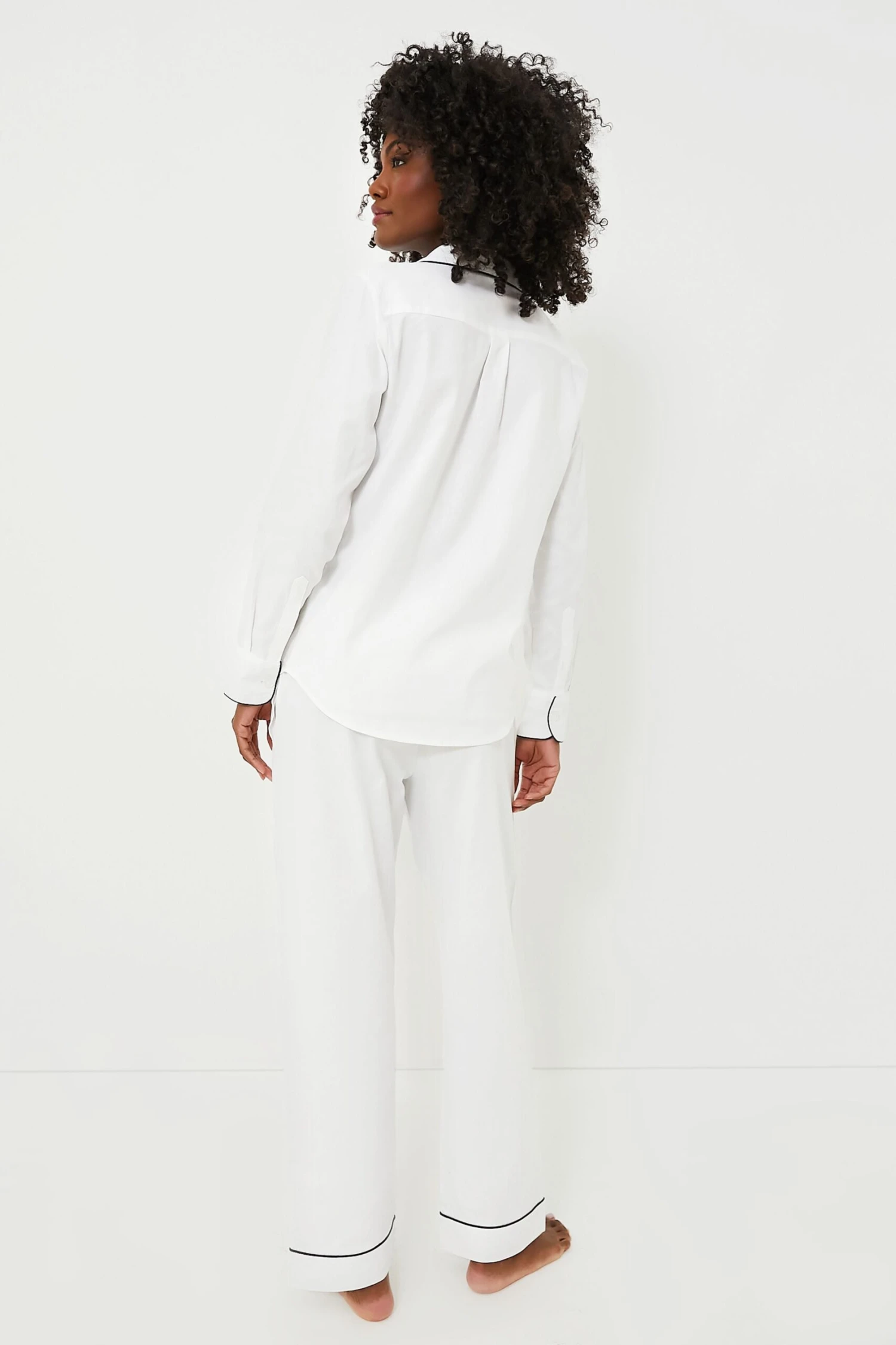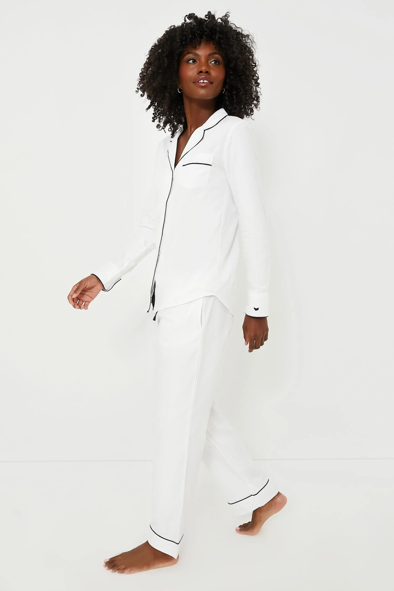 The White Pajama Set with Navy Piping is made from the finest quality cotton. Yarn-dyed to prevent fading and brushed for added softness, these get cozier with every wash. Add slippers and a robe for relaxing mornings with a cup of coffee!