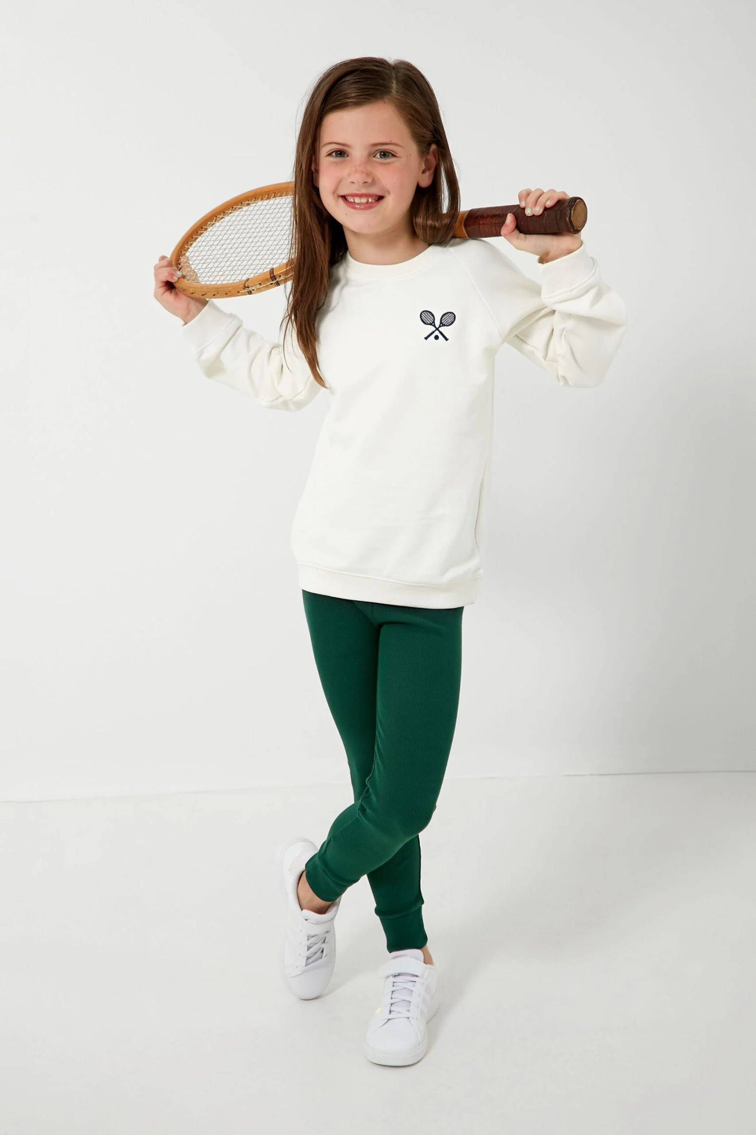 Made from cotton french terry, the White Sweatshirt with Navy Tennis Rackets is exactly what your little one needs to keep cozy in style. With a round neckline, long sleeves, ribbed cuffs, and a super-snuggly fabric, this pullover is about to make getting dressed a breeze. Using OEKO-TEX certified dyes and 100% organic fabric that are eco-friendly and suitable for sensitive skin, this is a piece you can feel good about adding to your kiddo’s wardrobe.