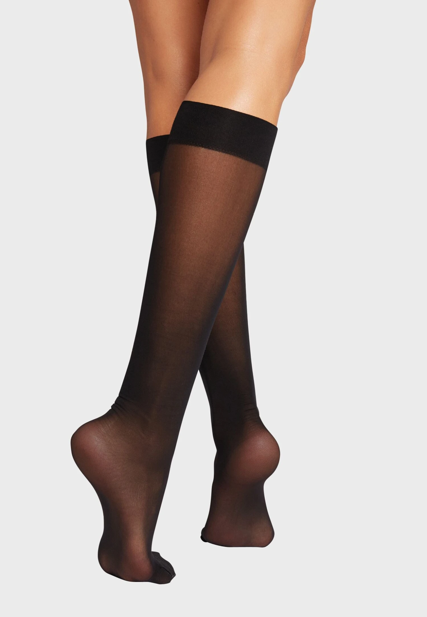 The perfect addition to a discreet outfit, the Black Individual 10 Knee Socks are light as a feather and ultra-chic. Complete with a wide band at the leg opening for a comfortable feel, and a reinforced toe for security inside your shoes, this sheer style is a must-have. For a subtle cool factor, pair these with a pleated skirt or under a maxi dress for the illusion of tights!